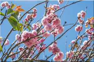 Spring flowers under blue sky